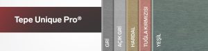 | Tepe Unique Pro Line ® | 8/10/12 | 1250 | 3000 | Gri, Açık Gri, Hardal Sarısı, Yeşil, Kiremit Kırmızısı |